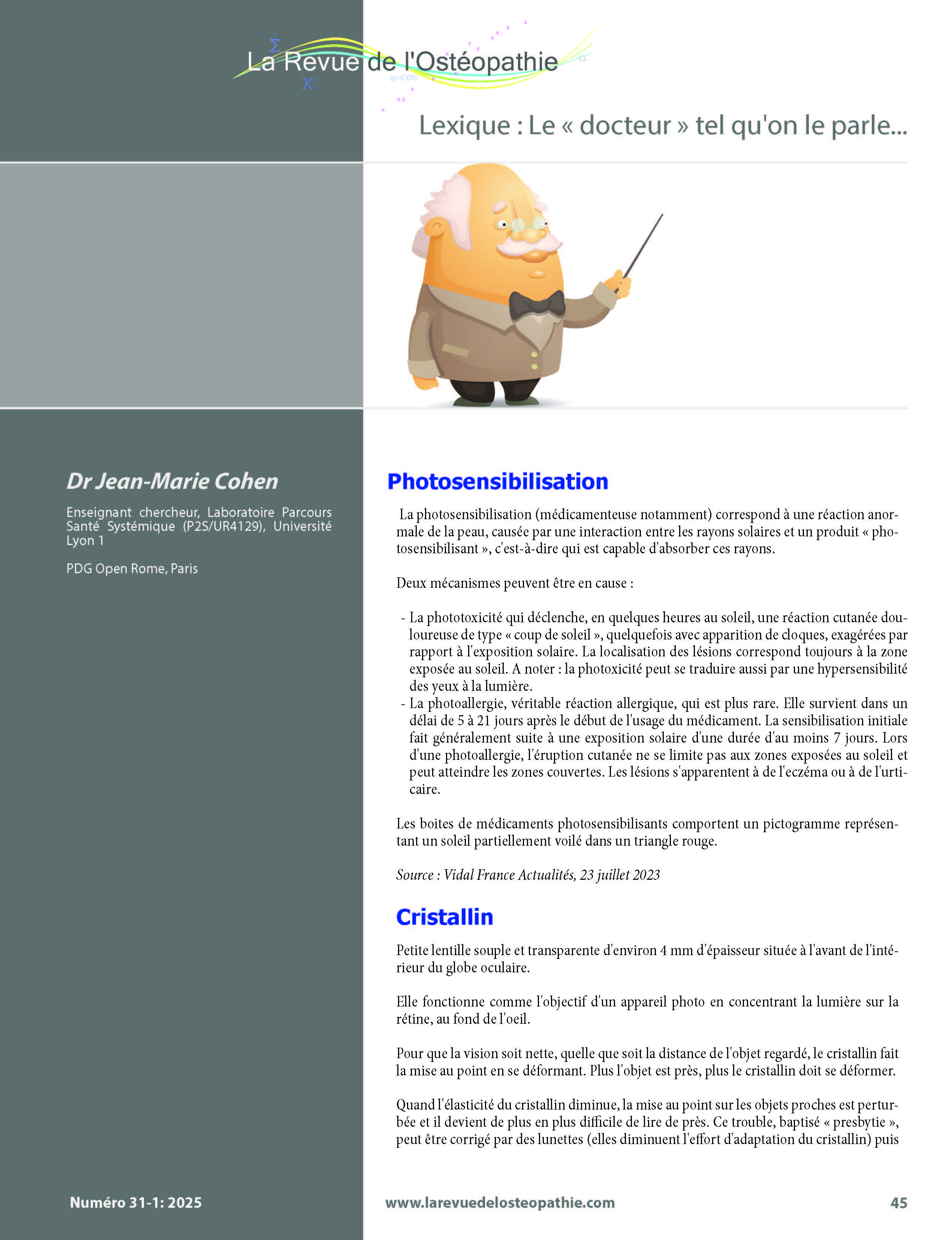 Lexique : Le « docteur » tel qu'on le parle... Photosensibilisation, Cristallin, Épidémiologiste